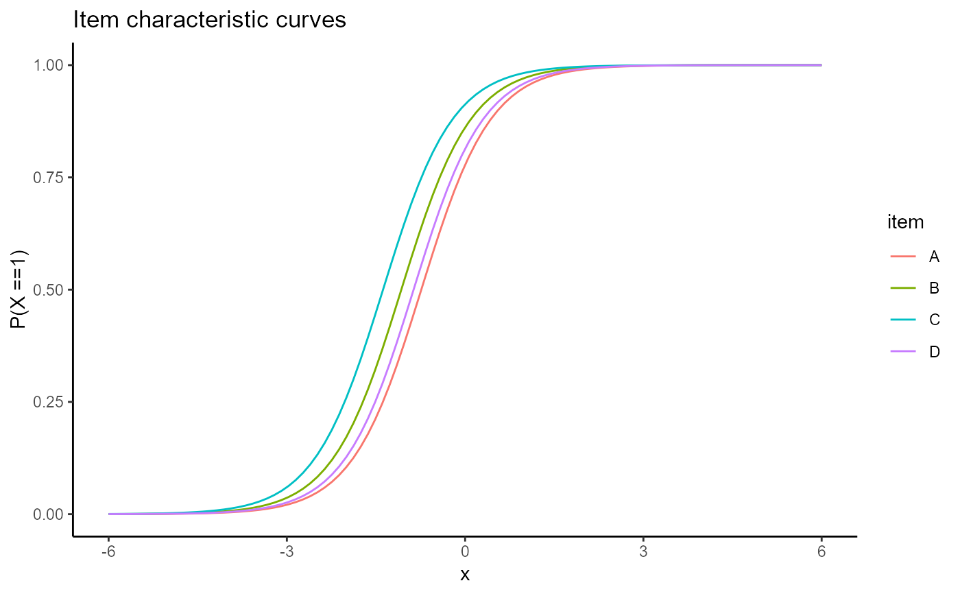items | Which items to plot? Either a numeric vector of item positions in the column names of the data, or a vector of the item names to plot. If nothing is specifed all items will be plotted. |